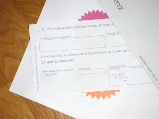 Det var inte bara räkningar brevbäraren kom med idag, utan en spännande avi också. Jag tror minsann jag har ett mjukt paket att hämta ut...